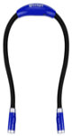 The book light reminds a short hose with LED lights on both ends. In fact, it is a steel and flexible arm covered with soft silicone, durable and non-toxic. Every end of the arm has a blue light with 2 LEDs each: one spotlight and one wide angle one.